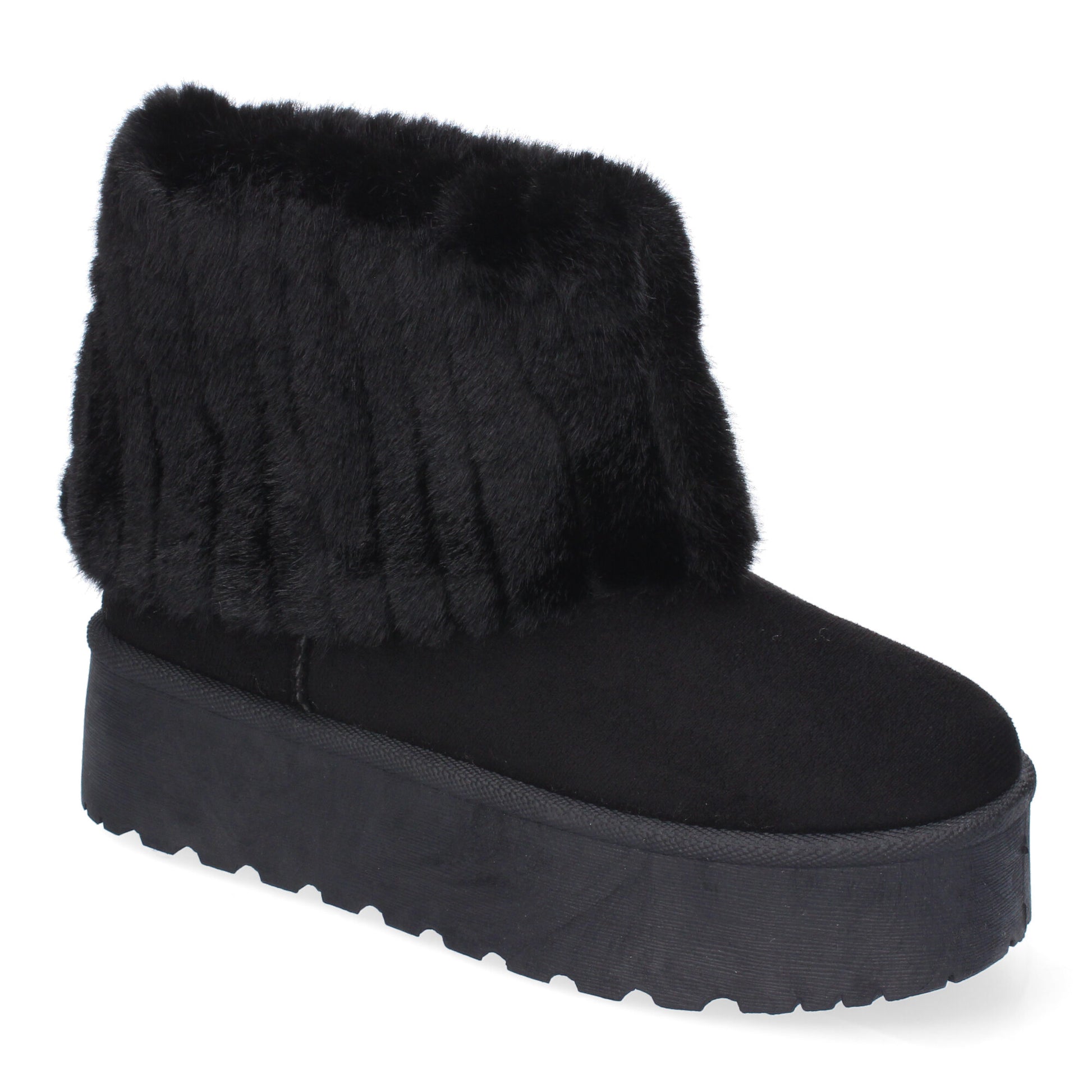 Botín Australiano Negro de Plataforma con Forro de Pelo