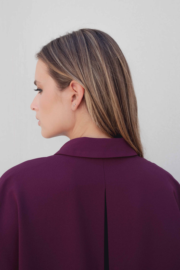 Detalles: Camisa de corte clásico con un cuello sastre. El detalle distintivo es la manga que se puede llevar doblada con vuelta. Cierre frontal con tapeta oculta para un acabado limpio.