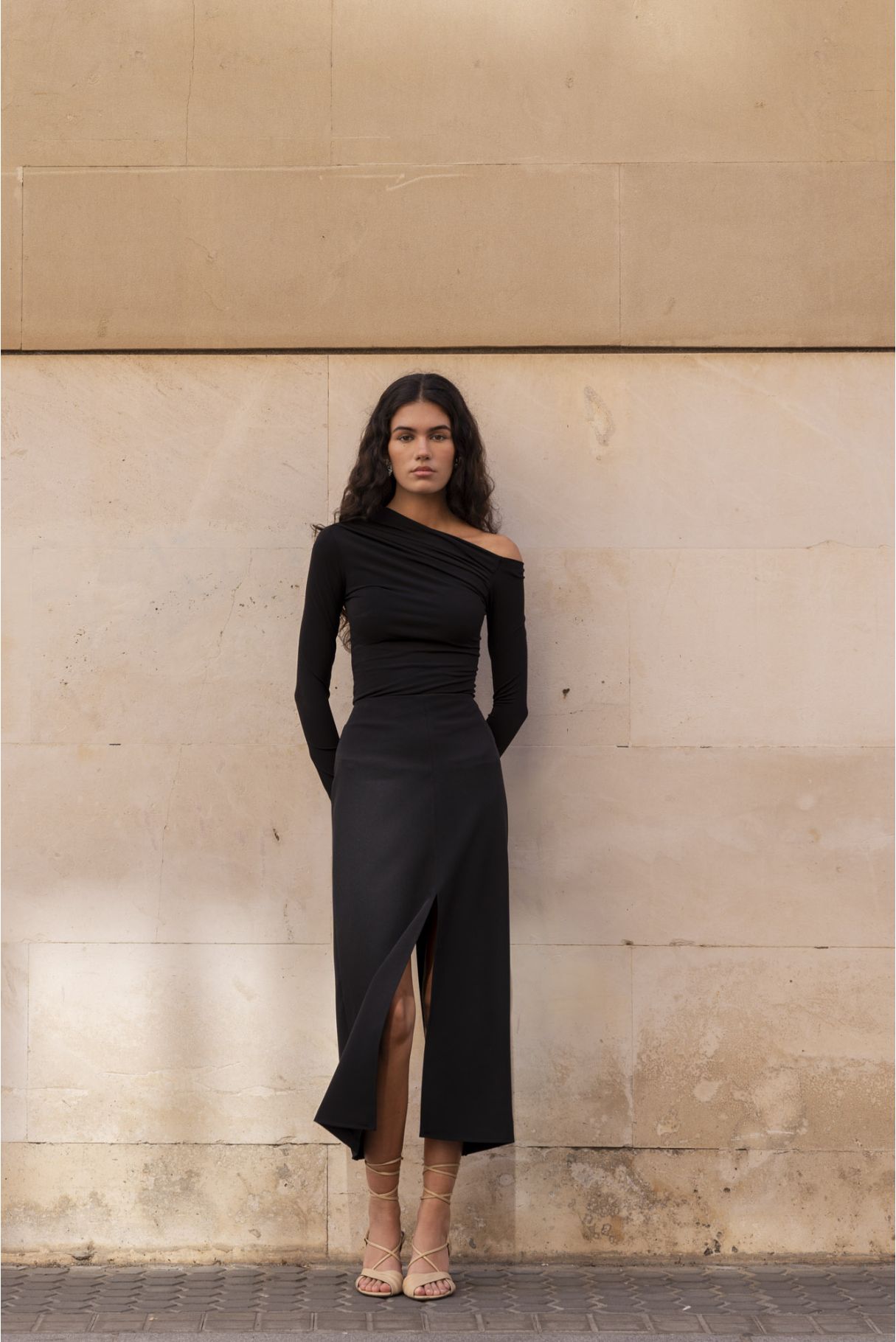 Falda midi con aberturas color negro
