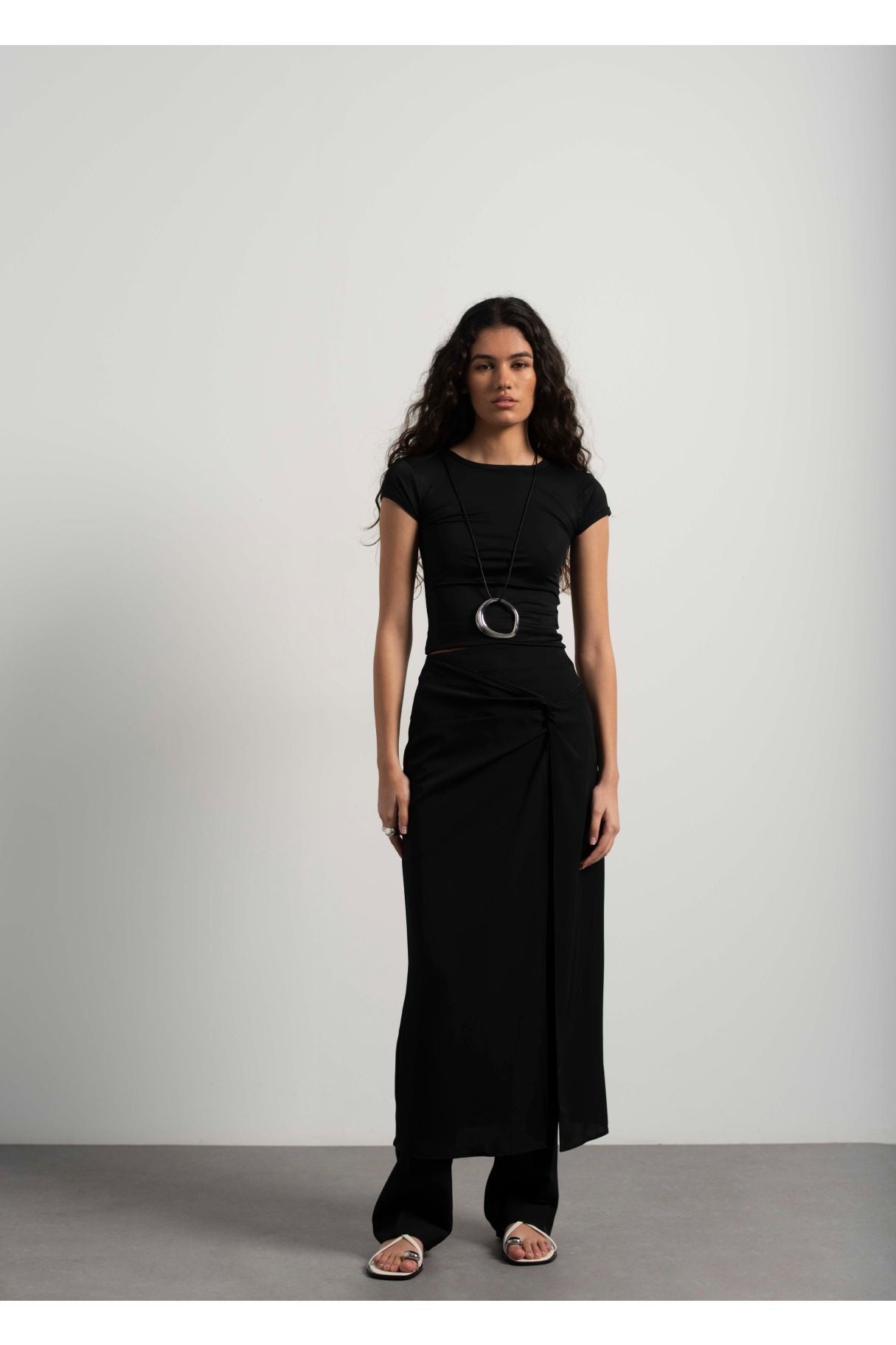Falda midi pareo de color negro, faldas midi elegantes para mujer de Emarola & Co