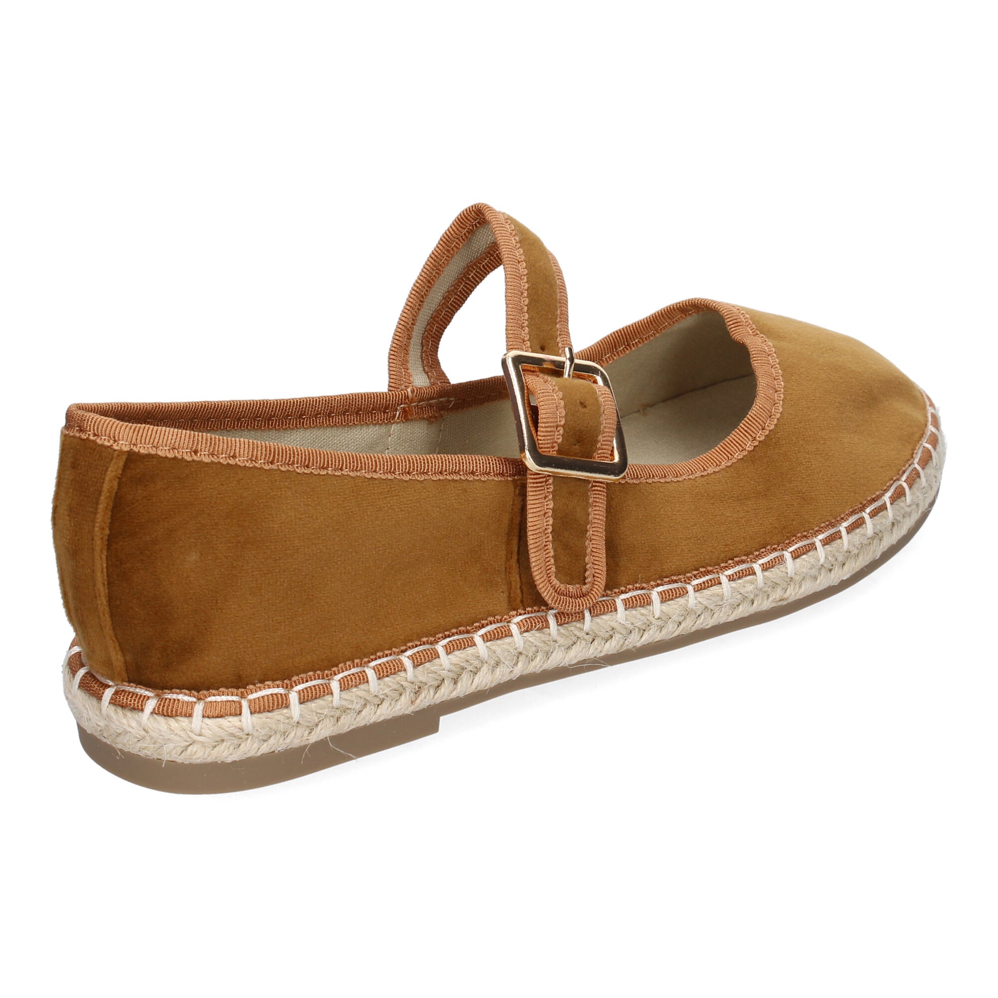 Bailarina tipo alpargata de mujer en color camel, con detalles de yute. Un calzado muy cómodo con un diseño moderno. Cuenta con un práctico cierre de hebilla que permite un ajuste cómodo y seguro al tobillo. Son el complemento ideal para tus looks más frescos de primavera y verano.