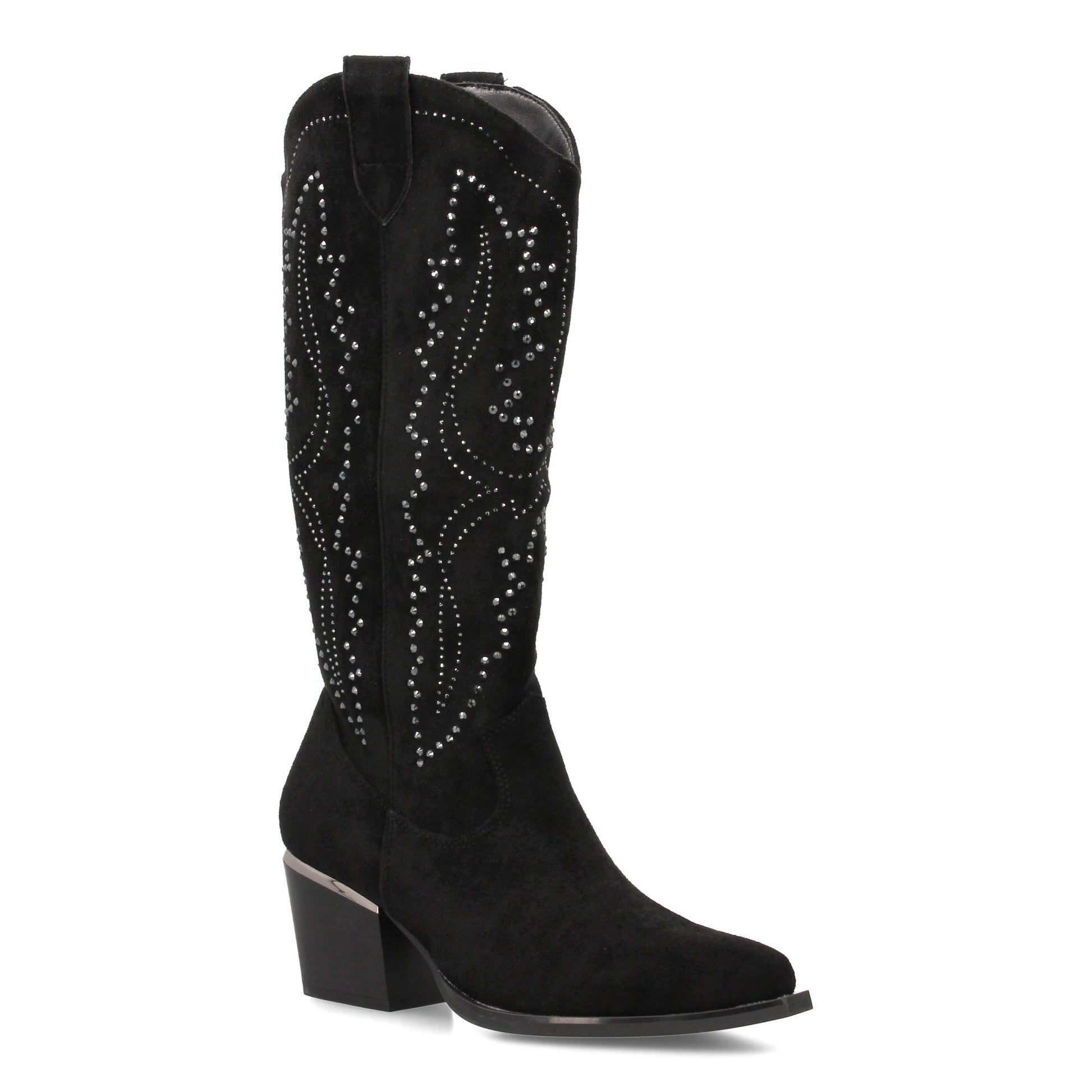 Bota Vaquera Negra de Mujer con Brillos y Tacón Cubano de 6cm