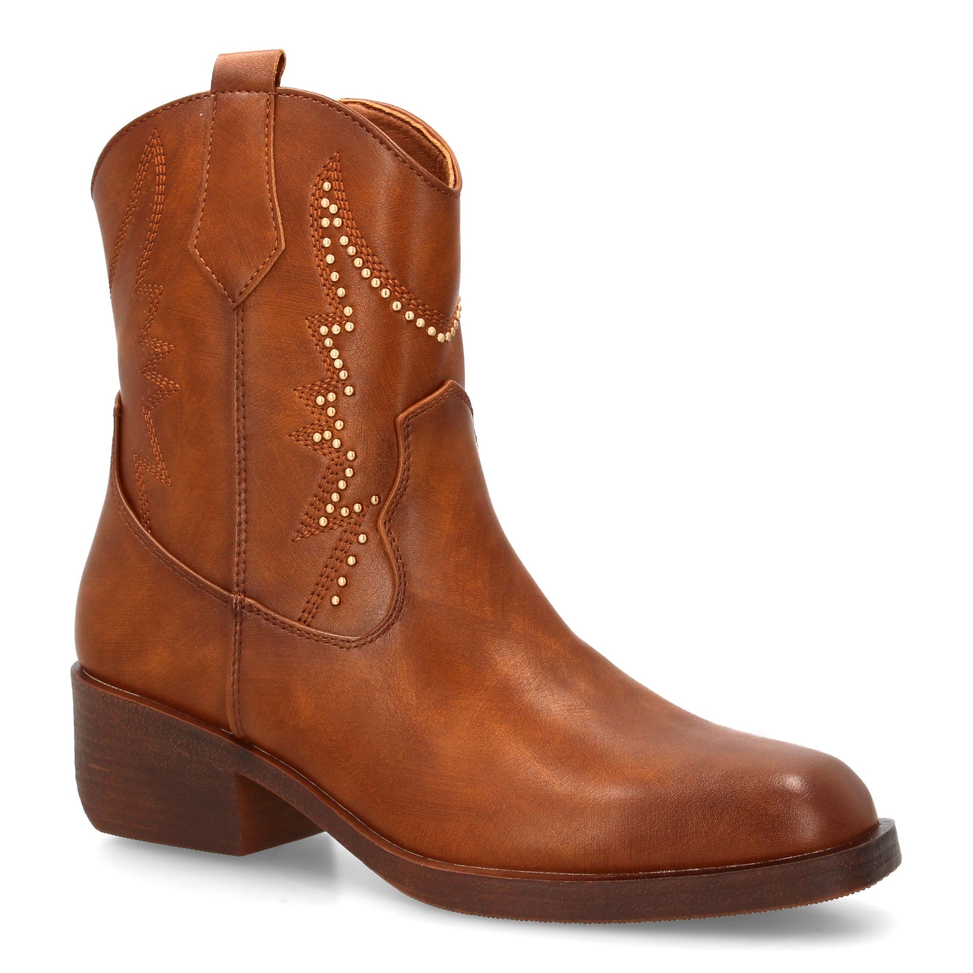 Botín de Ante Faux con Tacón Cuadrado - Camel